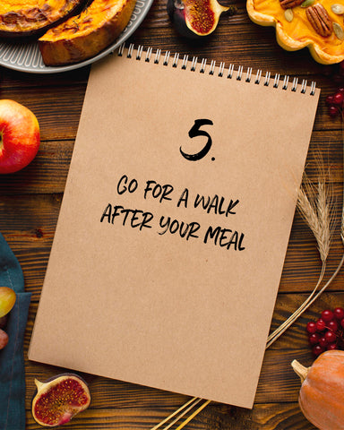 Walking helps your body digest. To feel your best, make it a tradition for you and your family to get in some sort of movement after the meal to get your digestion working. The worst thing you can do is stuff your face and then just lay on the couch all day.